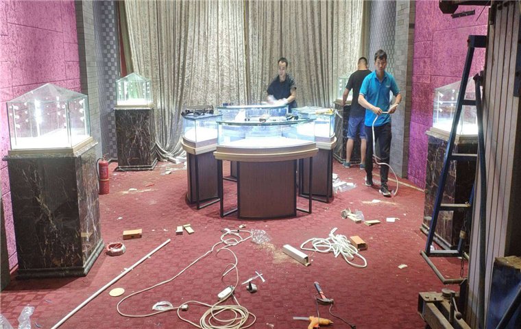 福盛鼎展柜自营厂踏踏实实做人,认认真真做事的工人施工一角